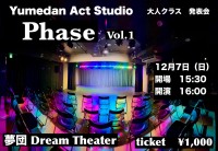Yumedan Act Studio 大人クラス(木曜日)による初の合同発表会がいよいよ、今週末と迫って来ました✨【Phase Vol.1】・開催日時12月7日(日)15:30 開場16:00 開演・開催場所夢団 Dream Theater(あざみ野駅 徒...